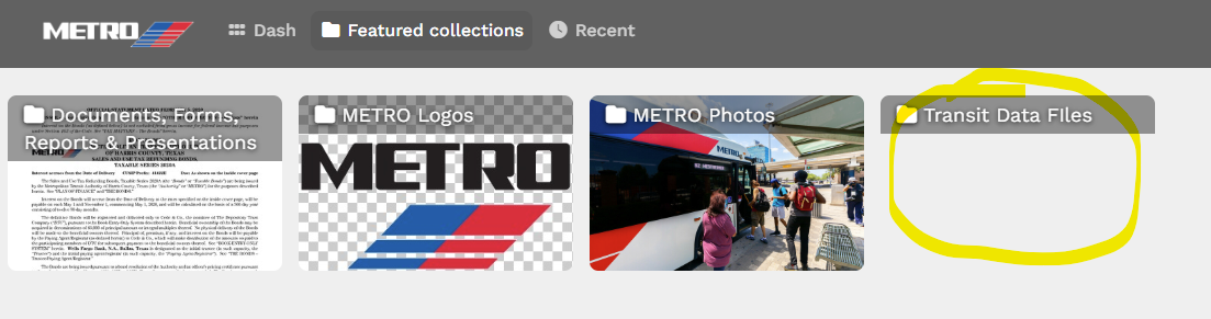 - From the left "Featured collections" dropdown select Transit Data Files.