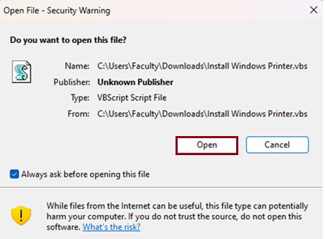 - Click here to download the printer script to install the printers automatically.