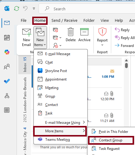 - In the ribbon, click Forward Contact → As an Outlook Contact.